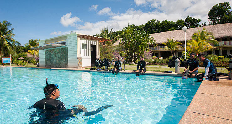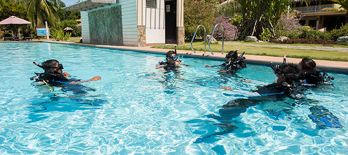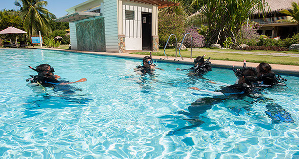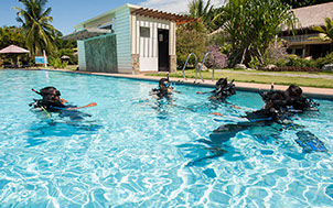 When the diver is comfortable with breathing and able to communicate through hand gestures, an open water session follows right after