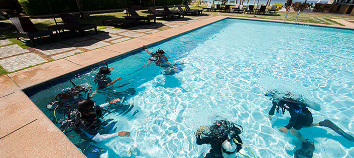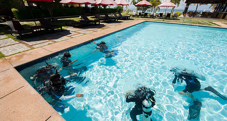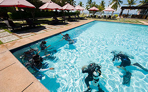 The activity includes a briefing, a pool session where basic non-verbal communication skills are taught and an actual dive within the controlled environment of the pool